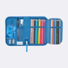 - Односекционный пенал с содержимым.