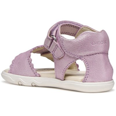 Лёгкие и дышащие сандалии для девочек, создающие естественное ощущение ходьбы босиком. Модель в сиреневом цвете с комфортным верхом из металлизированной зернистой кожи и регулируемыми ремешками. Технология SteppieUp обеспечивает оптимальную поддержку благодаря тонкой и гибкой подошве, а также усиленному носку.