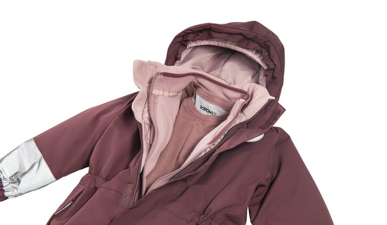 - Три слоя: первый — лёгкий и прилегающий, второй — тёплый и дышащий, третий — защищает от ветра и влаги.