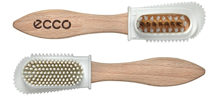С помощью ECCO Nubuck Brush легко поддерживать обувь из нубука в отличном состоянии. Эта качественная щётка с деревянной ручкой выполняет несколько функций: более мягкая сторона идеально подходит для удаления лёгких пятен, а сторона с более жёсткой щетиной помогает справиться с серьёзными загрязнениями. Верхняя часть предназначена для очистки труднодоступных мест, например кожаных кантов и краёв.